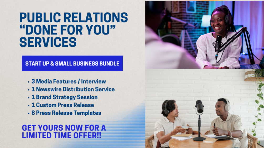 The PR (Public Relations) Bundle offered by AOI Events & PR is a budget-friendly package designed to boost brand visibility through three targeted media placements, a written press release, newswire distribution, a PR / Brand strategy session, all aimed at helping startups and small businesses gain recognition and credibility.